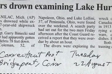 Box 5 Folder 72. Shipwrecks – Sweden Item 1. Newspaper Clippings