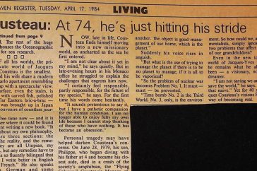 Box 6 Folder 34: Cousteau, Jacques Item 1. Newspaper Clippings
