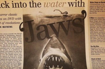 Box 6 Folder 11: Benchley’s Peter – Jaws – Sharks Item 4. News Article – Back to the Water With Jaws