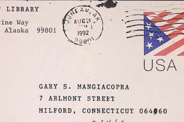 Box 1 Folder 12: Libraries Item 7: Gary Manciacopra Letter to the Juneau Library
