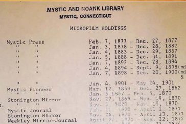 Box 1 Folder 12: Libraries Item 4: Mystic and Noank Library Microfilm Holdings