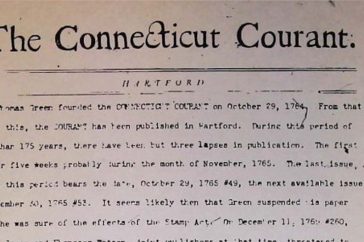 Box 1 Folder 3: Newspaper Archives Connecticut Courant, 1964-1910s Item 1: Thompson R. Harlow Article