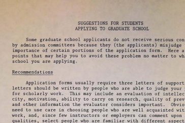 Box 1 Folder 1: Thesis Requirements Item 13: Suggestions for Students Applying to Graduate School