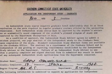 Box 1 Folder 1: Thesis Requirements Item 7: Application for Independent Study