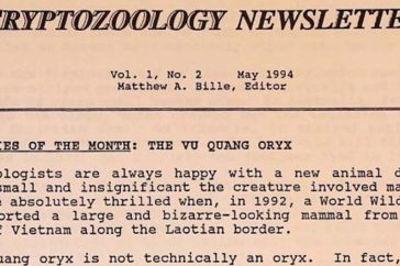 Box 3 Folder 28. Cryptozoology Newsletter Item 2. Vol. 1 No. 2